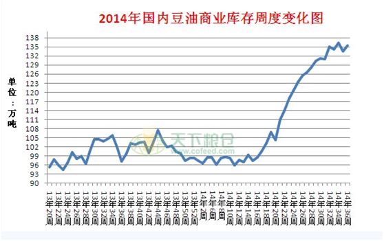 2014年的美豆生長(zhǎng)狀態(tài)良好,它們?cè)诟伤某醮合虏シN,雨水也比較適宜,沒(méi)有發(fā)生往年的洪澇等炒作因素,經(jīng)歷過(guò)盛夏,在最后預(yù)期沒(méi)有霜凍的良好狀態(tài)下完成生長(zhǎng)。相較于往年,今年是22年以來(lái)?yè)碛凶詈玫纳L(zhǎng)環(huán)境的一年,72%的美豆優(yōu)良率,最高單產(chǎn)46.4蒲式耳的預(yù)估,總產(chǎn)量接近39億蒲式耳的預(yù)估,一個(gè)個(gè)數(shù)字均創(chuàng)下歷年來(lái)的記錄。然而在沒(méi)豆一路豐產(chǎn)的形勢(shì)下,再看CBOT的美豆報(bào)價(jià),劍指1000美分/蒲式耳,創(chuàng)了4年以來(lái)的歷史新低,再算上通貨膨脹,這個(gè)數(shù)字還要繼續(xù)做加法。作為大豆重要的產(chǎn)成品豆油,則面臨著似乎更大的困境,高企的庫(kù)存,不振的需求,接下來(lái)的行情又該如何演繹。