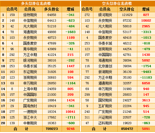 圖1:上期所多空方前20總持倉: