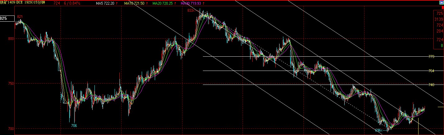 從短線(xiàn)十五分鐘技術(shù)圖上來(lái)看,鐵礦短期突破下行軌道上方,仍受高一級(jí)別的下行線(xiàn)上方壓制。上方軌道線(xiàn)及反彈第一主力位在740附近受到壓力,日內(nèi)反彈至740附近能逢高輕倉(cāng)試空。日內(nèi)背靠700輕倉(cāng)逢低做多,注意止損。