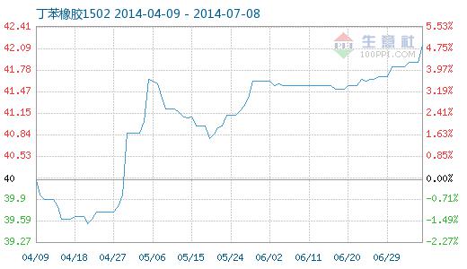 7月7日丁苯橡膠1502商品指數(shù)為42.15,較上日上升了0.25點,較周期內(nèi)最高點103.60點(2011-09-08)下降了59.31%,較2013年07月11日最低點33.88點上漲了24.41%。(注:周期指2011-09-01至今)。