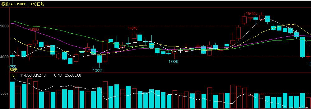 橡膠1409 | 14000 | 14125 | 13930 | 14010 | -230 | -1.62% | 375610 | 246758 | -5420 |