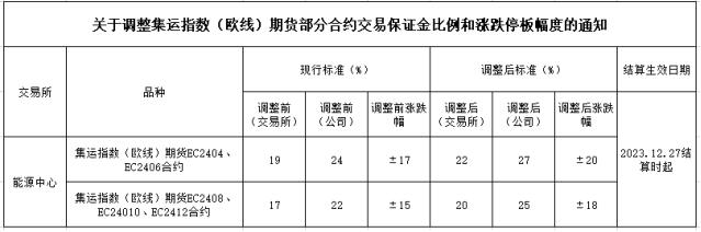 關(guān)于調(diào)整集運(yùn)指數(shù)(歐線)期貨部分合約交易保證金比例和漲跌停板幅度的通知