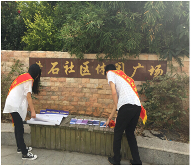 圖為工作人員在黃石社區(qū)開展宣傳工作: