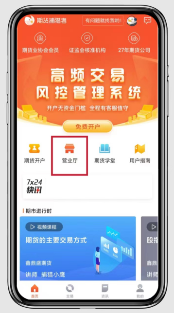 1.關(guān)注鑫鼎盛期貨微信公眾號(hào),通過“鑫開戶-營業(yè)廳”登錄