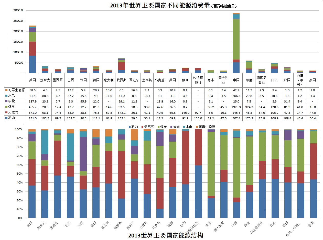 2013年世界主要國家能源消費(fèi)結(jié)構(gòu)