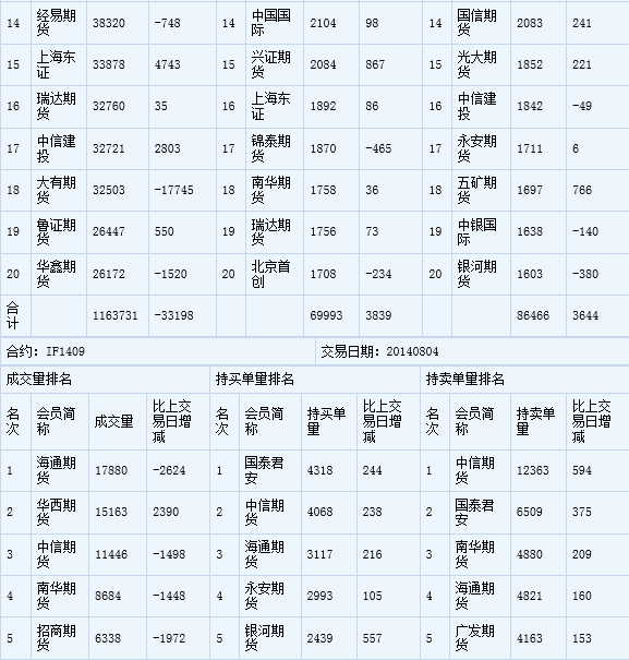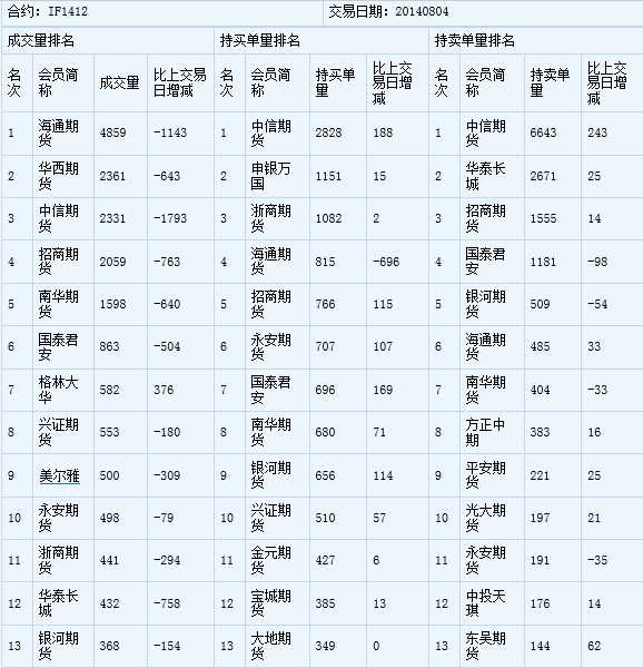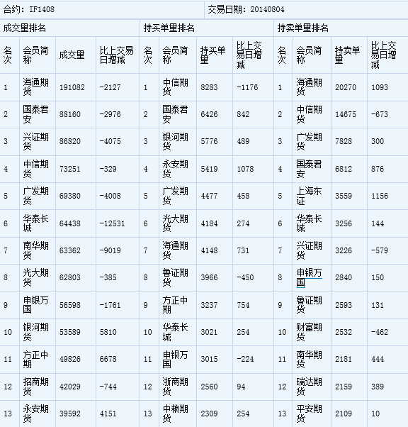 您的位置:首頁--持倉信息--國內(nèi)交易持倉報(bào)告股指期貨成交持倉龍虎榜08/04
