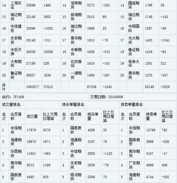 您的位置:首頁(yè)--持倉(cāng)信息--國(guó)內(nèi)交易持倉(cāng)報(bào)告股指期貨成交持倉(cāng)龍虎榜08/06