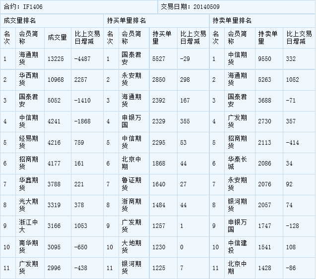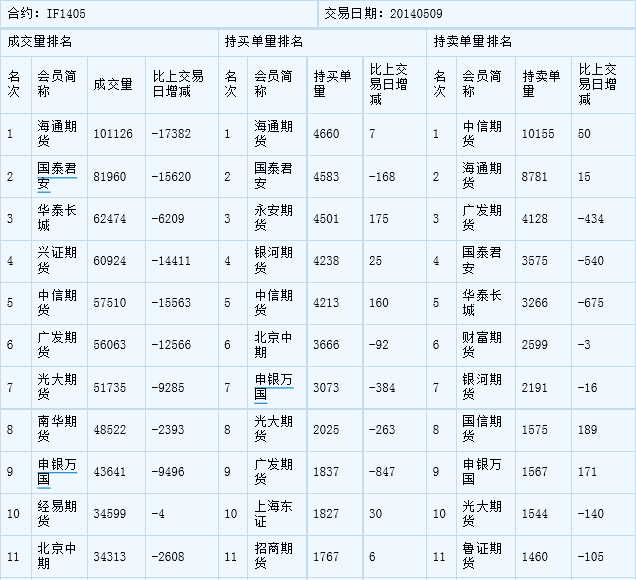 您的位置:首頁--持倉信息--國內(nèi)交易持倉報告股指期貨成交持倉龍虎榜05/09