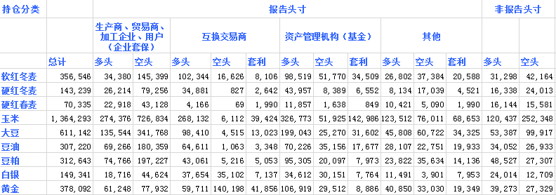 CFTC小麥持倉(cāng)情況