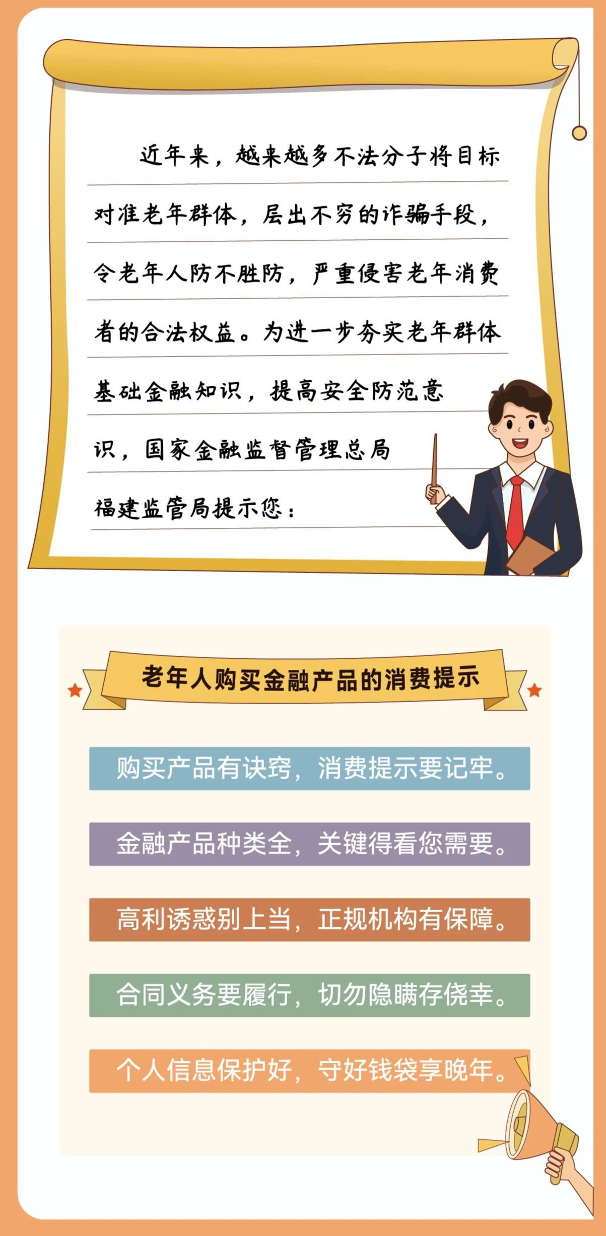 您的位置:首頁(yè)--投資者教育--專(zhuān)題活動(dòng)【金融消費(fèi)者權(quán)益保護(hù)教育宣傳月】關(guān)于老年群體的金融消費(fèi)提示