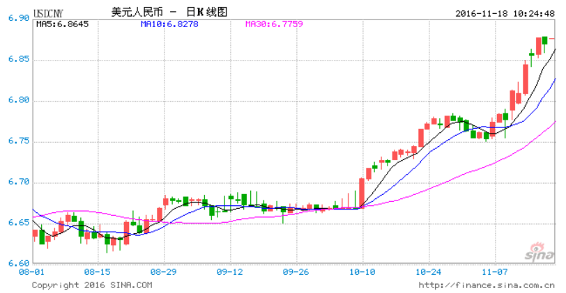 新浪財(cái)經(jīng)訊 11月18日消息,中國外匯交易中心公告,人民幣匯率中間價(jià)報(bào)6.8796,下調(diào)104個(gè)基點(diǎn),連續(xù)第11個(gè)交易日下跌,再度創(chuàng)下2008年8月以來的新低。 11月17日晚,美聯(lián)儲(chǔ)主席耶倫在國會(huì)聽證時(shí)表示,特朗普當(dāng)選美國總統(tǒng)沒有改變美聯(lián)儲(chǔ)“相對(duì)很快”升息的計(jì)劃,她還保證將完成任期。此番言論進(jìn)一步提振了美聯(lián)儲(chǔ)下月加息的可能性,再加上強(qiáng)勁的美國經(jīng)濟(jì)數(shù)據(jù)的影響,美元指數(shù)擴(kuò)大漲勢(shì)迫近101大關(guān),人民幣因此承壓。
