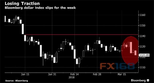 彭博美元指數(shù)上周五下跌0.4%,上周該指數(shù)下跌0.9%,為截至2月16日當(dāng)周以來(lái)首周下跌。