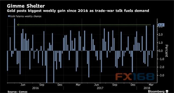 因日益嚴(yán)重的經(jīng)濟(jì)和地緣政治緊張局勢(shì)助長(zhǎng)了對(duì)黃金的避險(xiǎn)需求,上周黃金期貨取得近兩年來(lái)最大周漲幅。