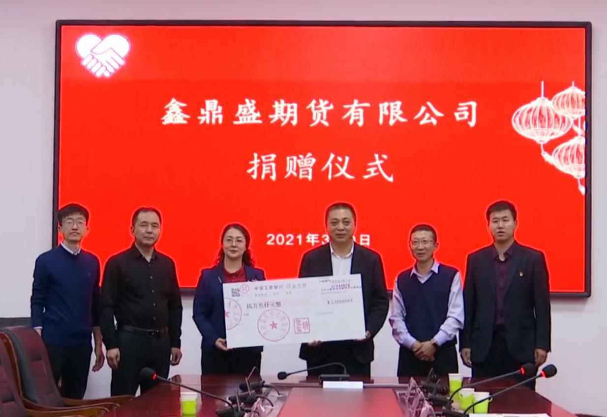 (圖一:鑫鼎盛期貨公司代表向察哈爾右翼前旗捐贈(zèng)幫扶善款)