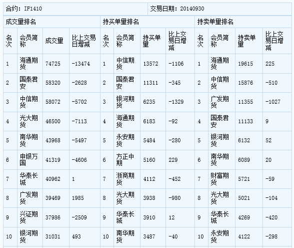 您的位置:首頁(yè)--持倉(cāng)信息--國(guó)內(nèi)交易持倉(cāng)報(bào)告股指期貨成交持倉(cāng)龍虎榜09/30