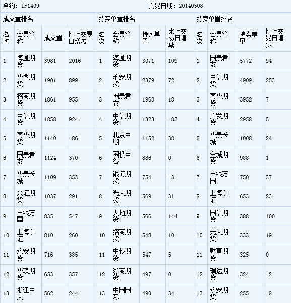 您的位置:首頁(yè)--持倉(cāng)信息--國(guó)內(nèi)交易持倉(cāng)報(bào)告股指期貨成交持倉(cāng)龍虎榜05/08